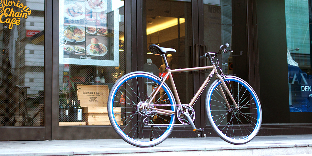 トラディショナルな形状のクロモリフレーム、カラーリングが魅力のスタイリッシュな1台。