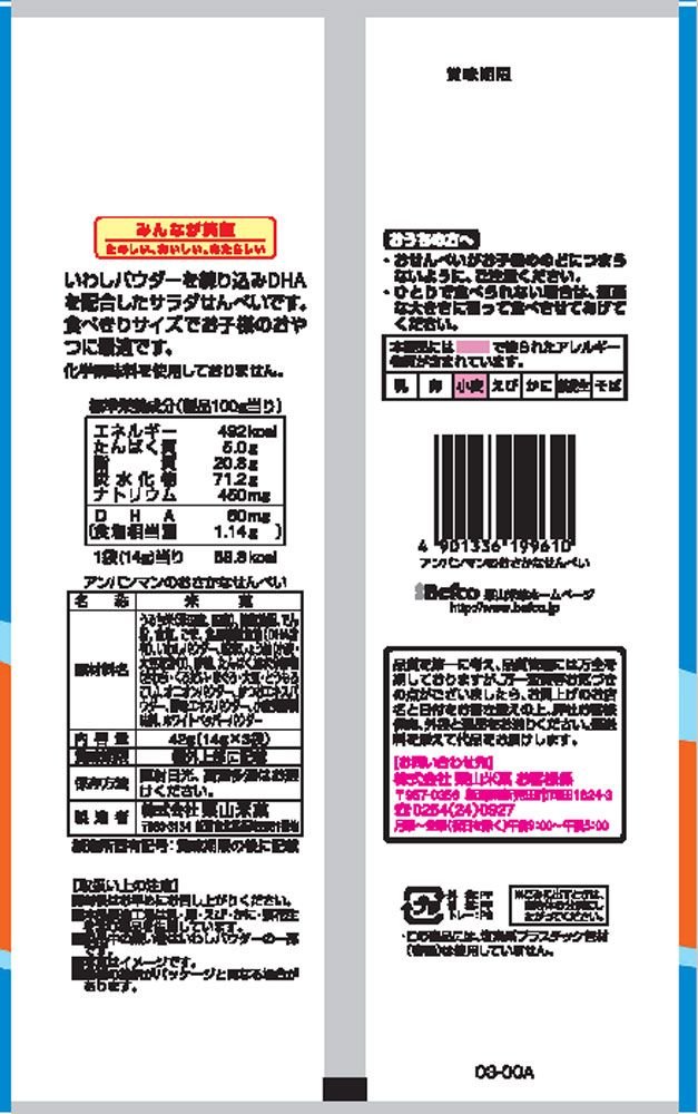 To snack, three-packed products of Anpanman convenient for going out.