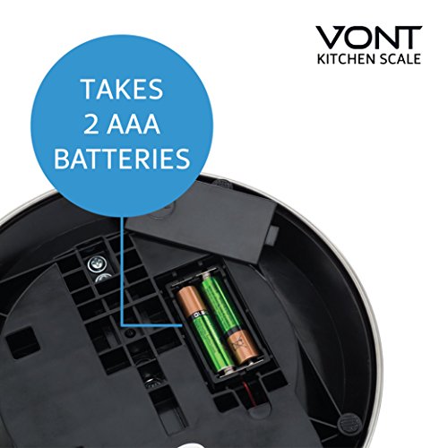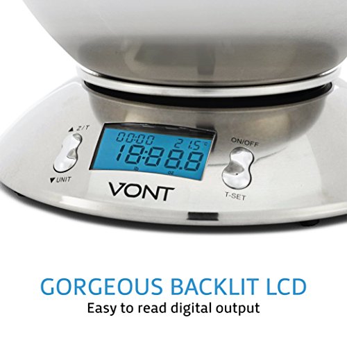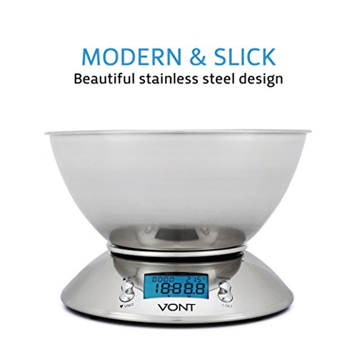 Vont 11lb/5kg Digital Kitchen Food Scale, Bowl Design, Stainless Steel with Alarm Timer & Temperature Sensor