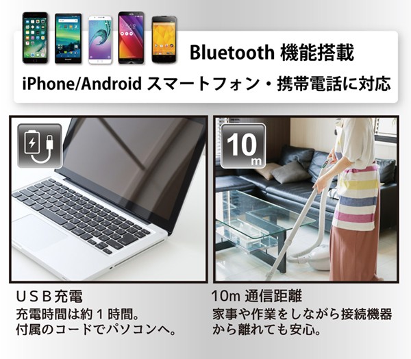 Bluetooth4.1対応のワイヤレス接続。
