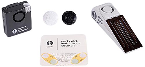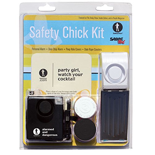 - Feature : The Safety Chick Kits include 4 essential personal safety products EVERY woman should own / Date Rape Drug Test Coasters - quickly tests drinks for the 2 most common date rape drugs / Door Wedge Alarm - 120dB alarm will alert you to a potential intruder BEFORE they get inside / Personal Safety Alarm - 120dB alarm and flashing strobe light draws attention and can signal for help / In addition, this kit includes PeepHole Covers - prevents spying by blocking Reverse PeepHole Viewers