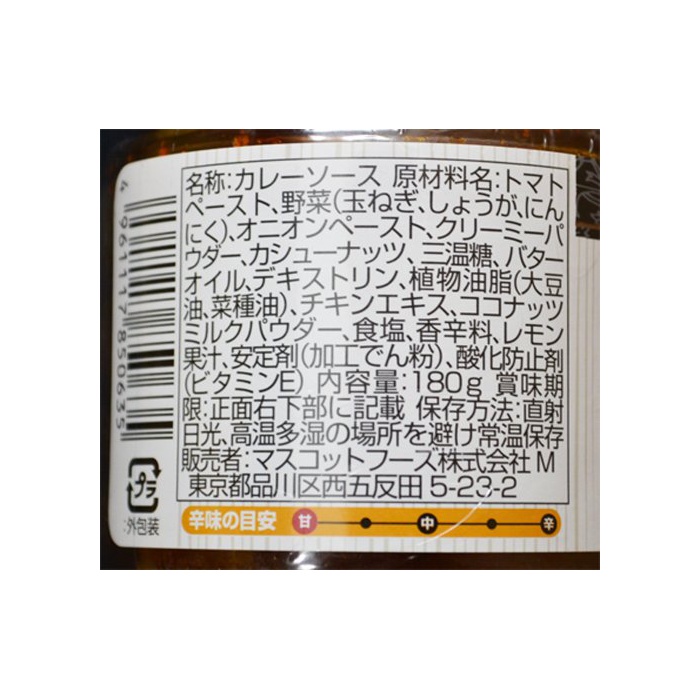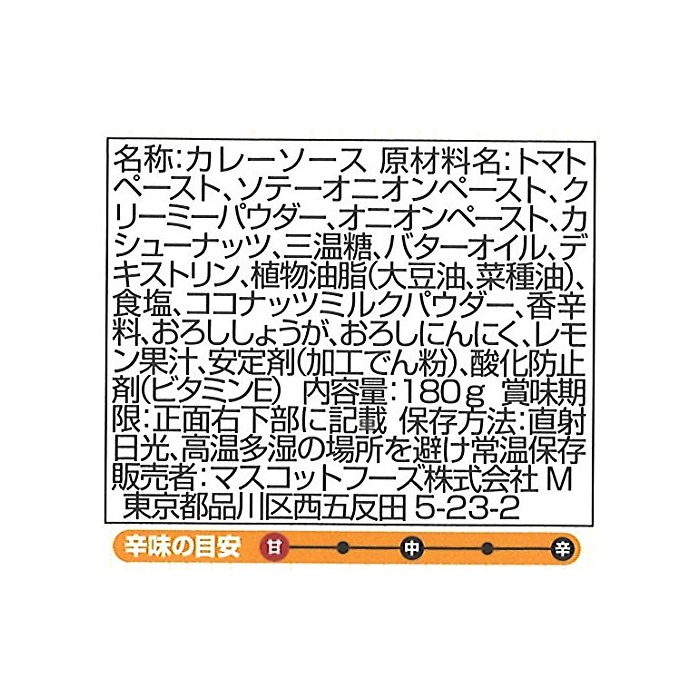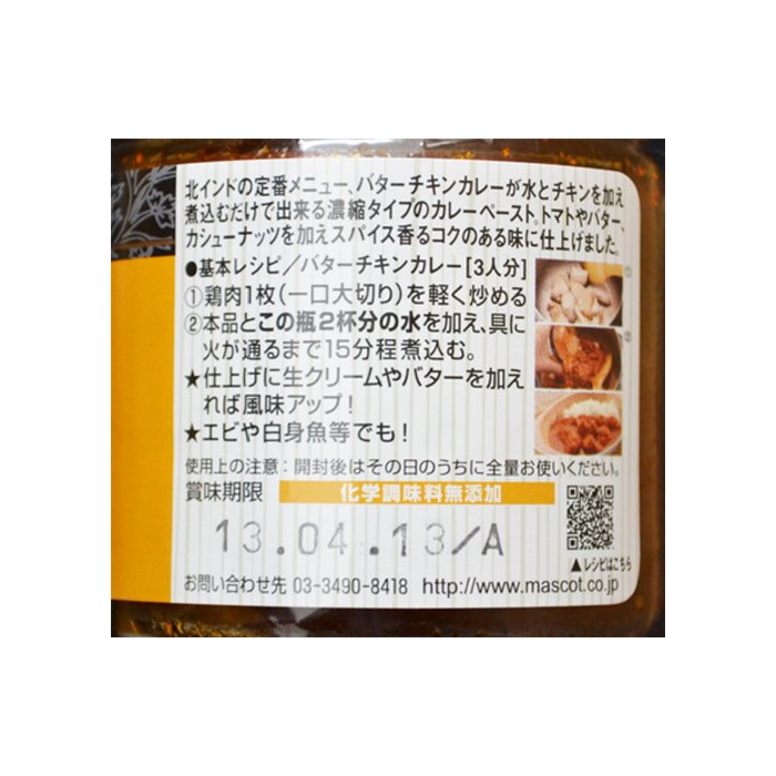 원본상품명: マスコット 印度の味 バタ?チキン 180g