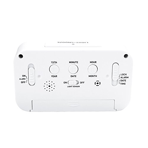 Smart digital alarm clock with white backlight is ideal for your home/office/car. This small clock has very big digits for easy time viewing. So you can read from a distance. Alarm setting is easy. You can set the alarm ringing time displayed on the screen. Daily alarm can be turned on or off. Snooze is good with interval of 5 minutes. Calendar function with month and date. Sensitive backlight can be turned on or off. If turn on, the backlight will turn on automatically when the ambient is dark. If this function is turn off. You can turn the backlight on by pressing the top button.