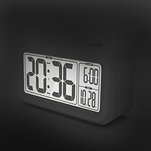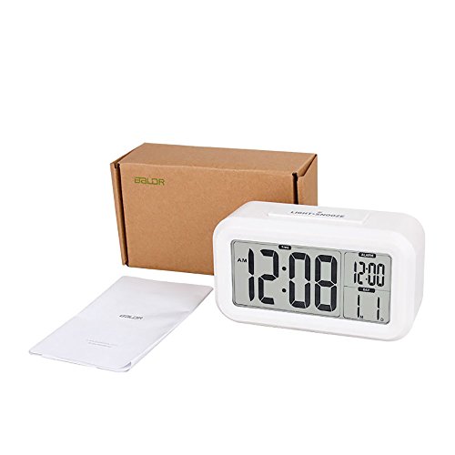 BALDR Smart Digital Alarm Clock Large Screen Big Digits Backlit And Snooze Time/Date Display Easy to Set and Battery Operated