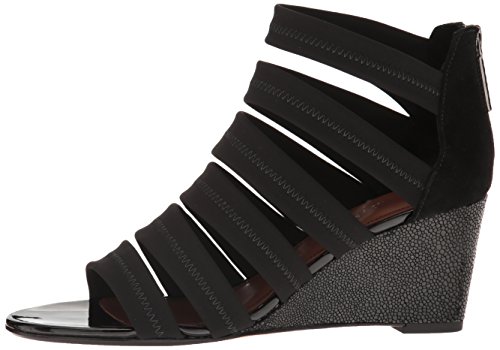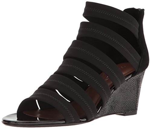 Studio : Donald J Pliner Publisher : Donald J Pliner Binding : Apparel Product Description Strappy wedge sandal with crepe elastic straps and kidsuede back quarter. wedge is wrapped in crackle patent leather. back zip for easy entry. buffed leather outsole with rubber pod insert. 0