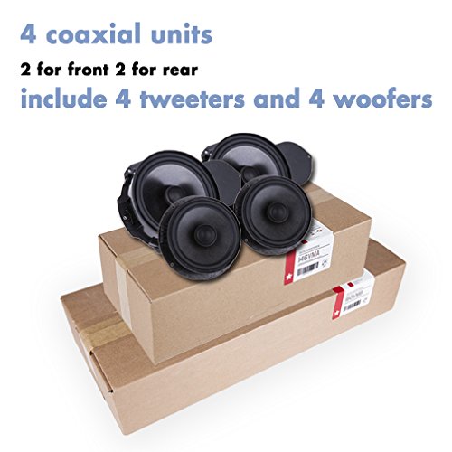 2 coaxial units 180VMB which include 2 tweeters and 2 woofers for front and 2 coaxial units 146VMA which include 2 tweeters and 2 woofers for rear(total 8 speakers)