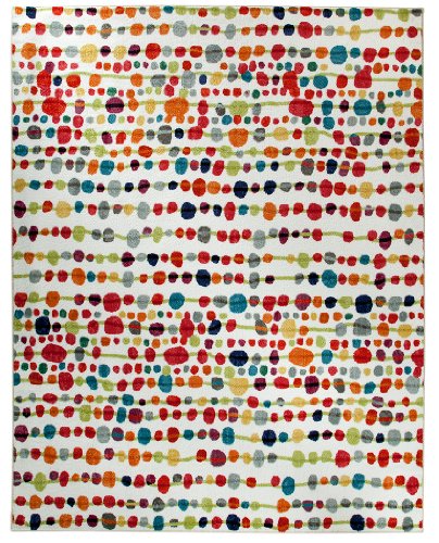 Fresh, funky and fun are a few words to describe this trendy new pattern. Possibilities abound for how to combine this rug to create a space that is spotted with your unique style and personality. Printed on the same machines that manufacture one of the world’s leading brands of printed carpet, this rug is extremely durable and vibrant. This technology allows the use of multiple colors to create a rug that is wonderfully designed and applicable to any room in your home. Printed on the same machines that manufacture one of the world’s leading brands of printed carpet, this rug is extremely durable and vibrant. This technology allows the use of multiple colors to create a rug that is wonderfully designed and applicable to any room in your home. With this gorgeous contemporary style and geometric pattern, this rug's pile height is 14/32 in high. Remember to keep the pile and fabrics in tip top shape. Area rugs should be spot cleaned with a solution of mild detergent and water or cleaned professionally. Regular vacuuming helps rugs remain attractive and serviceable. Only the best quality materials will do. This printed rug is loop cut with a loop pile on Wear Dated 100% nylon, with action backing. Made in USA.Feature