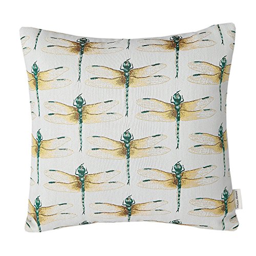 Mika Home Jacquard Dragonfly Pattern Decorative Pillowcase Sofa Pillow Cover for 18X18" Inserts Teal Cream