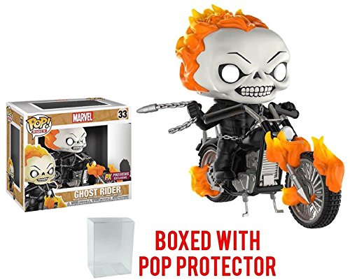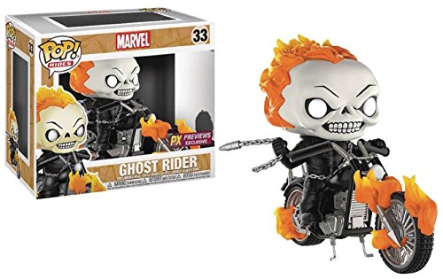 -. Binding : Toy -. Brand : Funko -. EAN : 0706098921561 -. Feature : Bundled Plastic Box Protector with the collector in mind (Removable Film) / From Marvel, Ghost Rider with Bike, as a stylized POP vinyl from Funko! / Stylized collectible is 3 3/4 inches scale, perfect for any Marvel fan! / Ships in acid-free PET plastic Pop Protector with peel-able protective film / Push-lock tab that adds structural integrity to the Pop Protector when formed -. Genre : Action -. Label : Funko -. Manufacturer : Funko -. MPN : GhostRiderBike33 -. PackageQuantity : 1 -. PartNumber : GhostRiderBike33 -. ProductGroup : Toy -. ProductTypeName : TOYS_AND_GAMES -. Publisher : Funko -. Size : 3.75 inches -. Studio : Funko -. Title : Funko Pop! Rides: Marvel Classic Ghost Rider with Motorcycle PX Exclusive Vinyl Figure (Bundled with Pop Box Protector Case) -. UPC : 706098921561