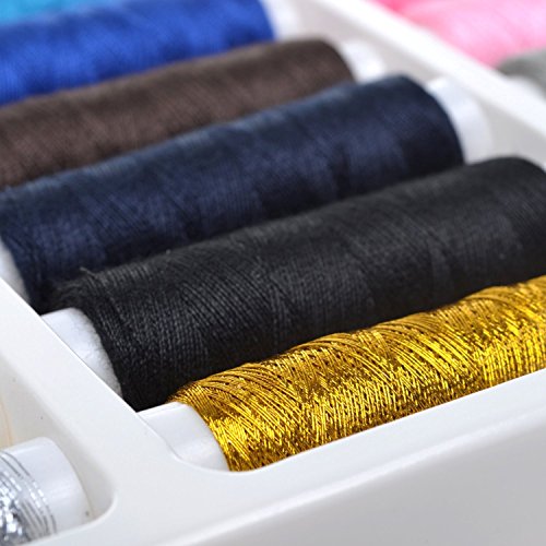 -. Feature : Package included: 39 assorted colors / Each size of 37 colors is 200 yard; Gold and silver color are 100 yard. / Material: Polyester / For garments stitching, bed sheets linings, or other art projects / Threads for hand sewing only! Not for sewing machine.