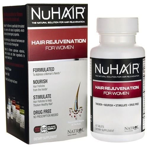 -. Feature : Thickens hair naturally Energizes follicular growth Provides intensive nourishment Safe, effective and drug free Natural herbal blend for hair loss and thinning hair Formulated specifically for women, this safe and effective natural hair growth formula provides intensive nourishment to revitalize the scalp and enhance hair growth. / NuHair? for Women offers a natural, safe and effective hair loss solution created to meet the unique needs of a woman. / For added effectiveness, NuHair? for Women also includes Silica, Biotin, Horsetail Extract, plus BioPerine? to deliver maximum results. / NuHair? for Women provides intensive nourishment for: Breakage around the hairline Excessively thinning hair Poor hair density