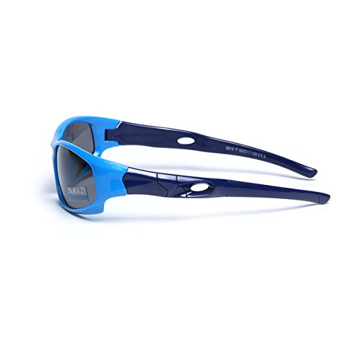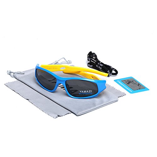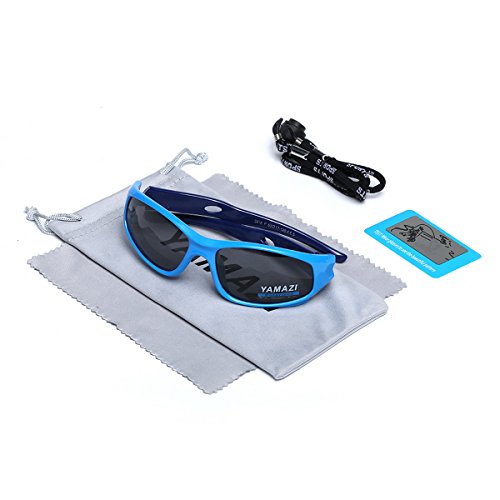 Product Description YAMAZI Children Polarized Sunglasses Rubber Flexible Frame For KIDS Sports Fashion unbreakable Eyewear: Special Benefits: 1. 100% UV400 polarized protection lens: The lens can filter out glare from reflecting surfaces and restore a vivid colorful world in your children's eyes. 2.Unbreakable And Light Weight, The super light frame will let your kids feel comfortable while wearing YAMAZI kids sunglasses. be confident your child's eyes are safeguarded while they play outdoors! They will not easily broke in normal use. 3.Imported food grade silicone material TPEE: The frame is bendable and unbreakable, so it is extremely safe for your kids. Great sports frame design for golf, cycling, running, fishing and all active outdoor activities. PRODUCTS DIMENSION: Glasses Height: 37mm (1.46inches); Glasses Width: 57mm (2.24inches); Leg length: 118mm(4.65inches); Nose bridge: 22mm (0.87inches); Total length: 115mm-125mm (4.52-4.92inches) Package Content: 1X Original Polarized Sport?Sunglasses 1X Pouch 1X Polarized Test Card CLEANING AND MAINTENANCE: Clean sunglasses with soft fabric, and avoid paper towel which grind dust fibers into lenses and can scratch. Avoid using household detergents or soaps. Mild soaps can be OK but harsher soaps can damage the lens coatings. Service:? 1. We provide 30 Day refund and lifetime Warranty on Frame Lens. 2. If you have any doubt or meet some problems with our products, please feel free to contact us.