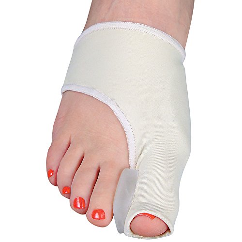 Gel bunion sleeve with toe spreader helps align big toe, relieve pressure on big-toe joints, and gently stretch tight tendons muscles.