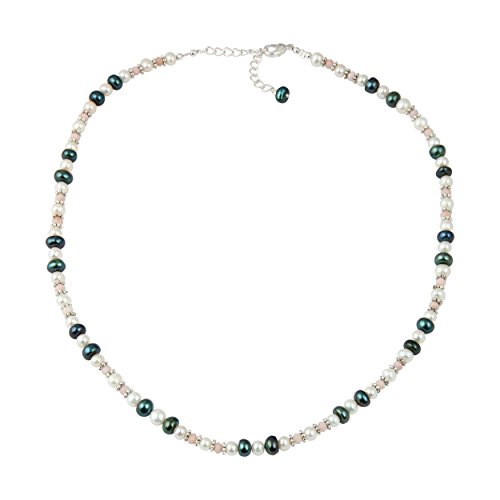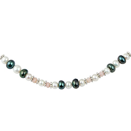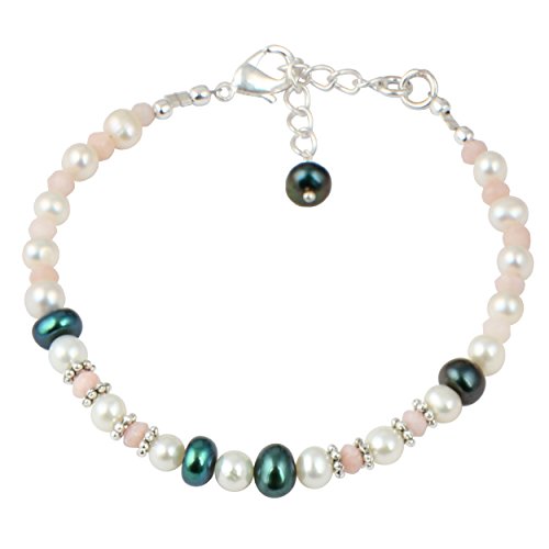 This elegant necklace set is hand-crafted in US by Pearlz Ocean. This pearl necklace set will make a wonderful gift for a special someone. The set includes a stunning pearl necklace, bracelet and dangle earrings. The pink opal faceted, white and orange mix freshwater pearls are with a gentle luster that reflects light discreetly. The length of the necklace in this is 18 inches and it has an extension of 2 inches and it secured with lobster claw clasp. The length of the bracelet is 7 inches and it has 1 inch and the earrings are 2 inches long. These necklace set will complement the wearer's elegant and glamorous look.Its a best Jewelry Gift collection for your loved one's on all events of Birthday, Valentine, Thanksgiving, Christmas, mother day and many more.Feature