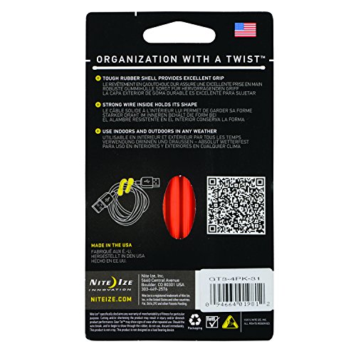 Nite Ize Original Gear Tie, Reusable Rubber Twist Tie, Made in the USA, 3-Inch, Bright Orange, 4 Pack