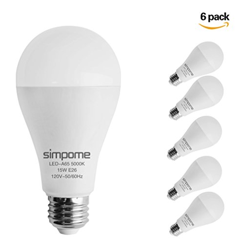 Simpome 15W A21 E26 LED Bulbs,Pack of 6 Units LED Light Bulbs,100W Incandescent Bulbs Equivalent,5000K Daylight White,1350 Lumens,AC 85-265V,220 Degree Beam Angle,Non-Dimmable