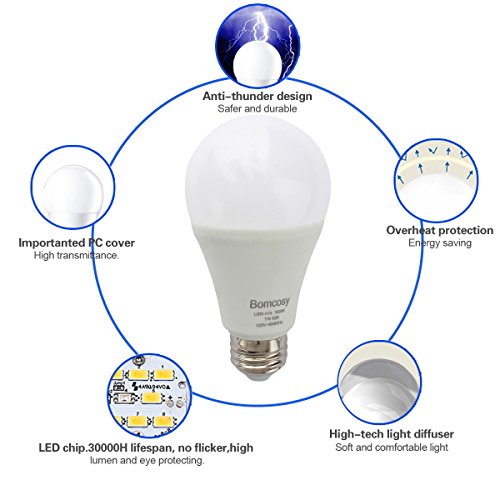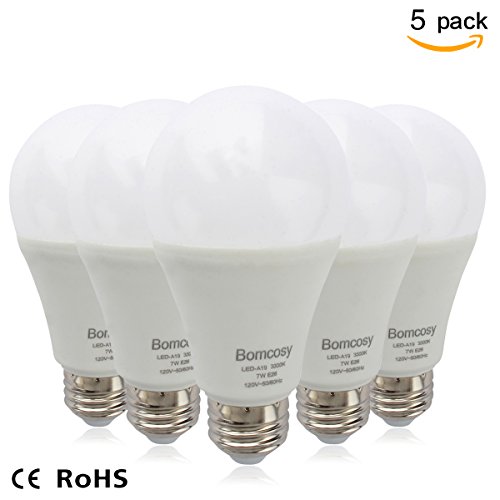 Bomcosy 7W A19 E26 LED Bulbs, 60 Watt Incandescent Bulbs Equivalent,650 Luminous,220 Degree Wide Beam Angle,E26 Base,Not Dimmable,3000K Warm White,Pack of 5 Units