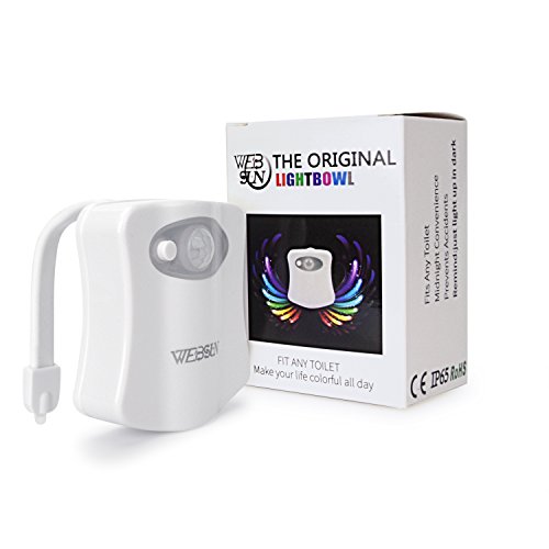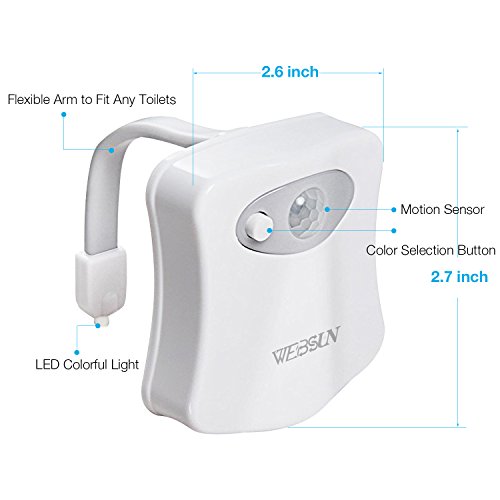 WEBSUN Toilet Night Light Motion Activated 8 Color Changing Led Toilet Seat Light Motion Sensor Toilet Bowl Light