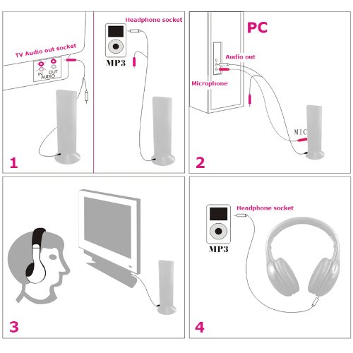 Reception from any audio and visual equipment with audio out socket, such as TV set, audio device, DVD / VCD player, multimedia PC, etc.