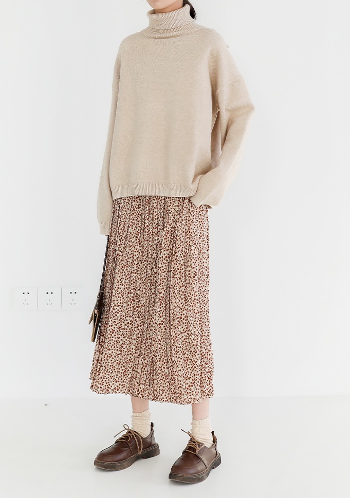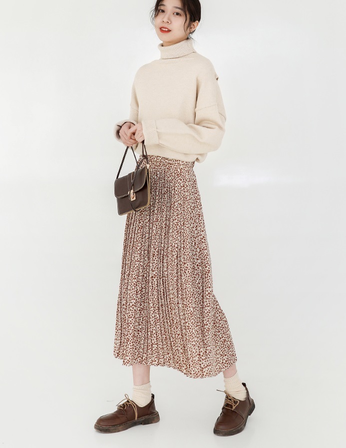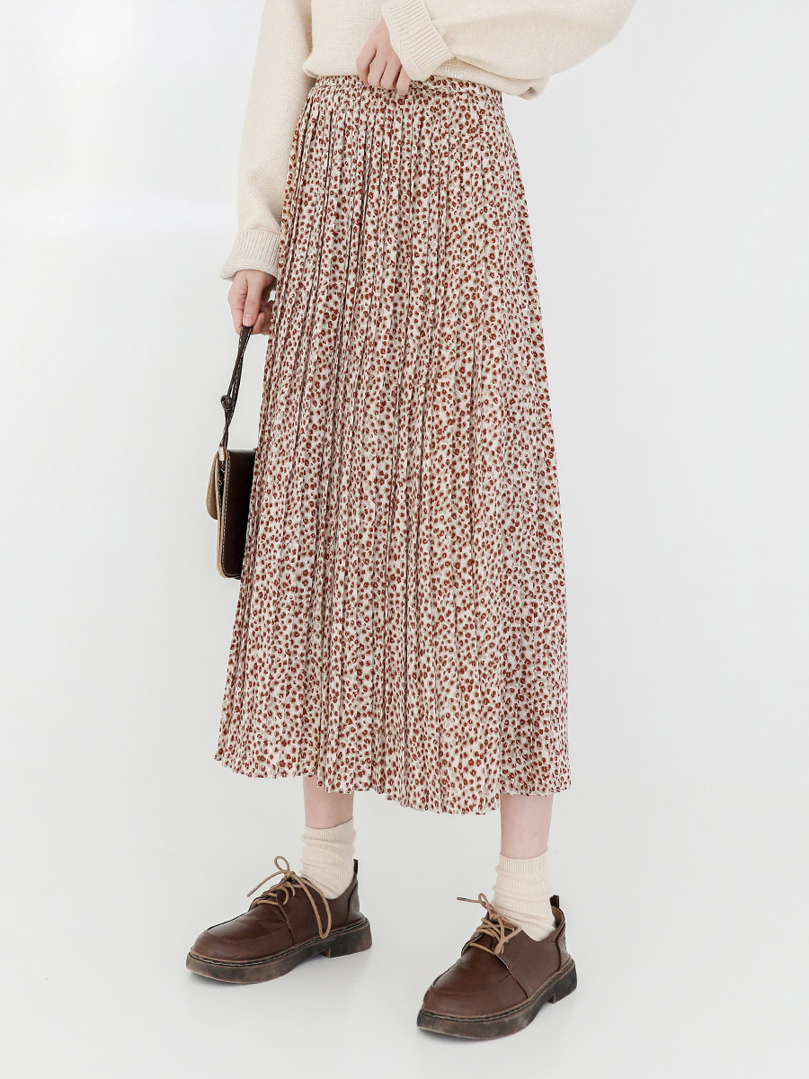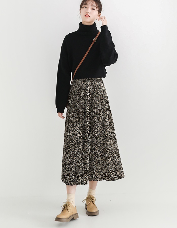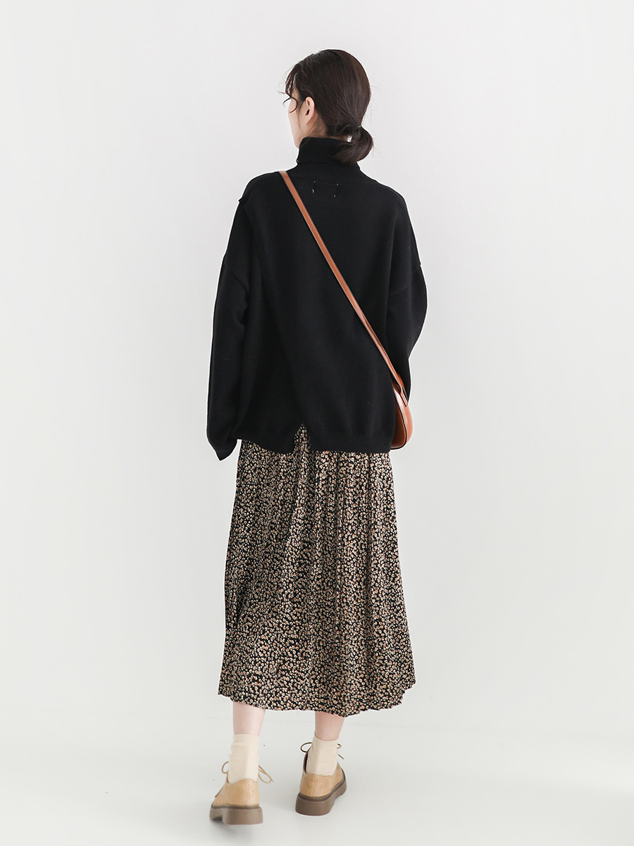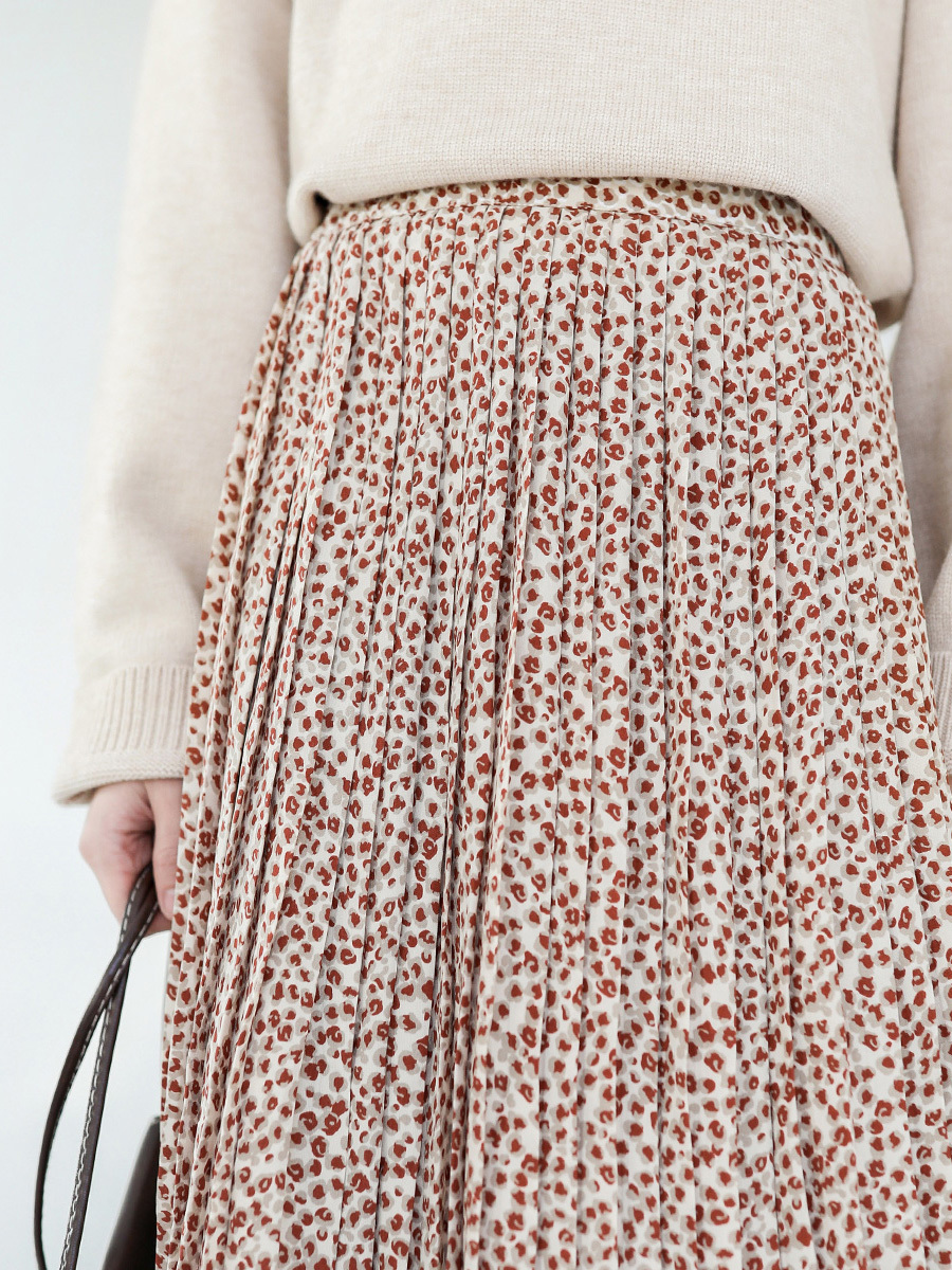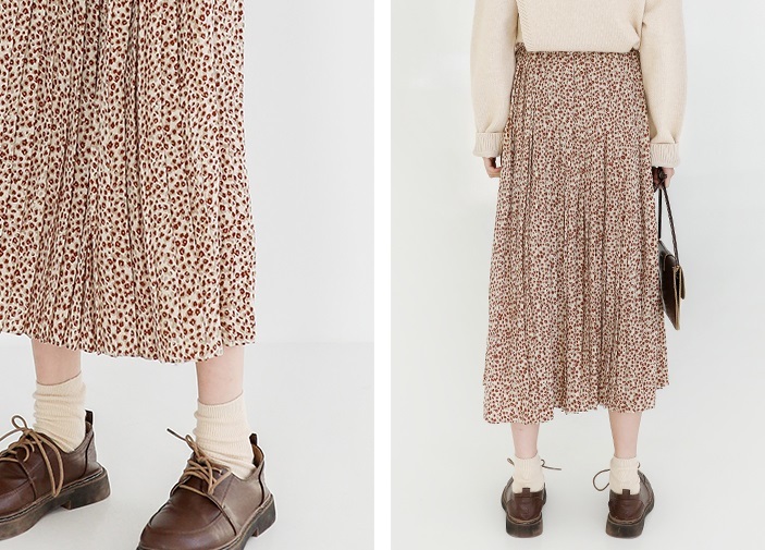 プリーツデザインとミモレ丈でエアリーなシルエットになり、ニットとの相性もバツグン!