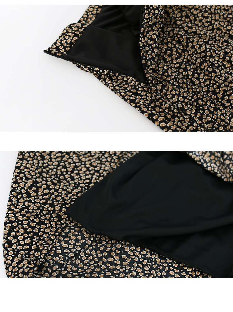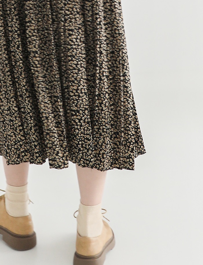 細かなヒョウ柄を全体に施し、主役級の存在感を放つミモレ丈スカートです♪