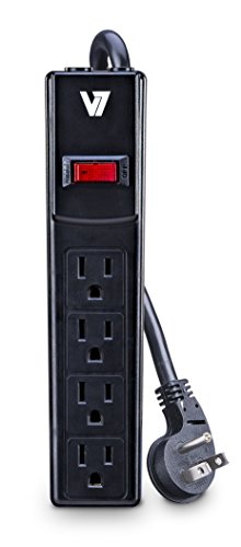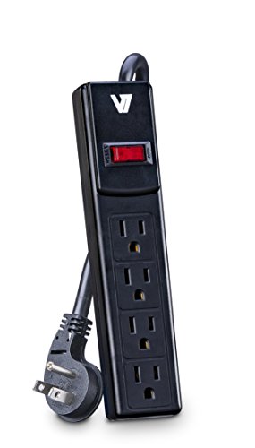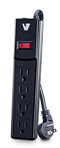 V7 SA0404B-8N6 Home/Office Surge Protector (4 Outlets, EMI-/RFI-Filter, Low profile wall plug, keyhole mounting, 450 joules, 3,9ft) black