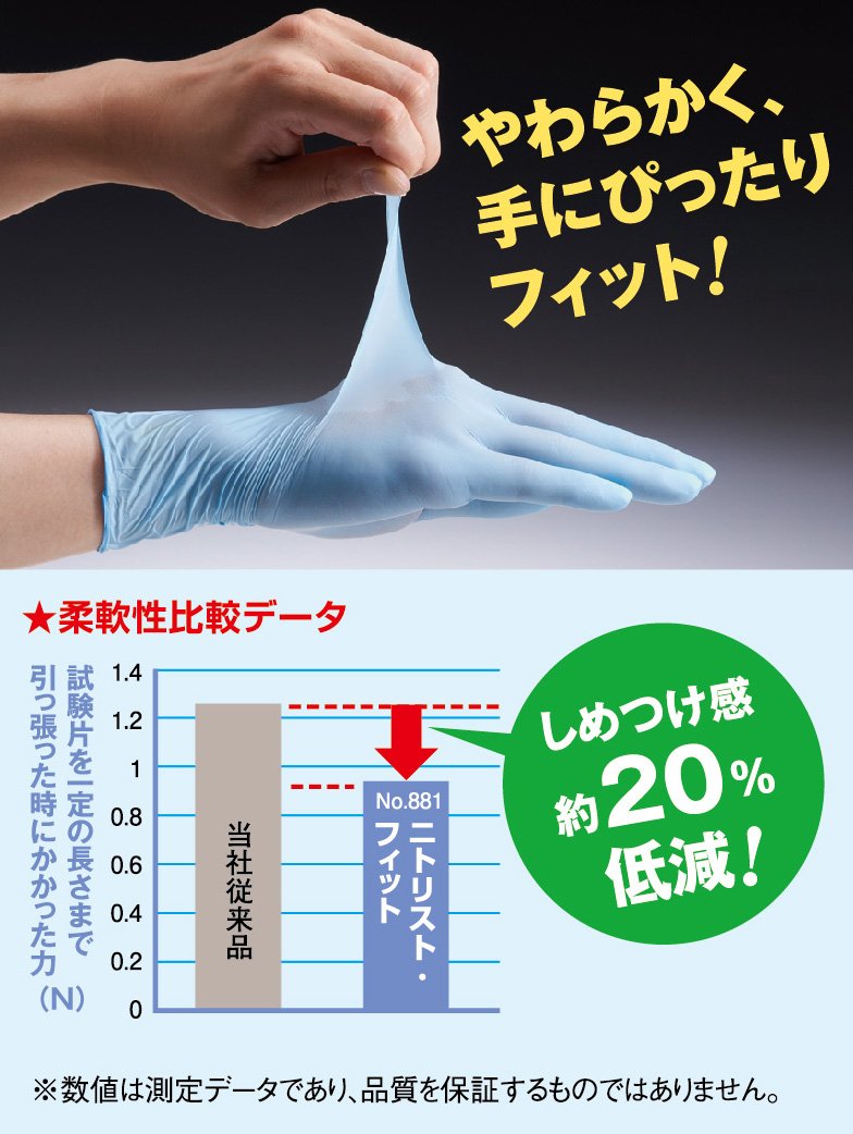 ● Nitrile rubber gloves excellent in oil resistance compared with natural rubber or vinyl gloves