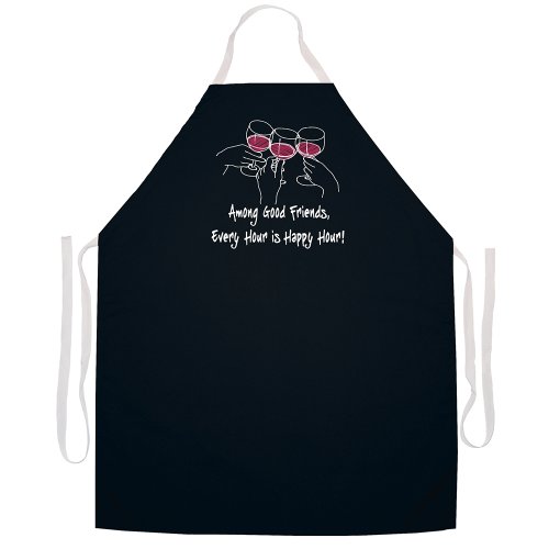Attitude Aprons "Among Good Friends, Every Hour Is Happy Hour" Apron; Black