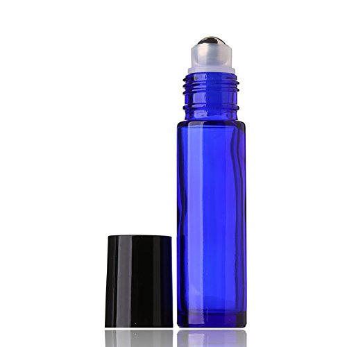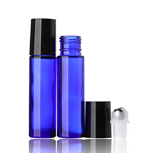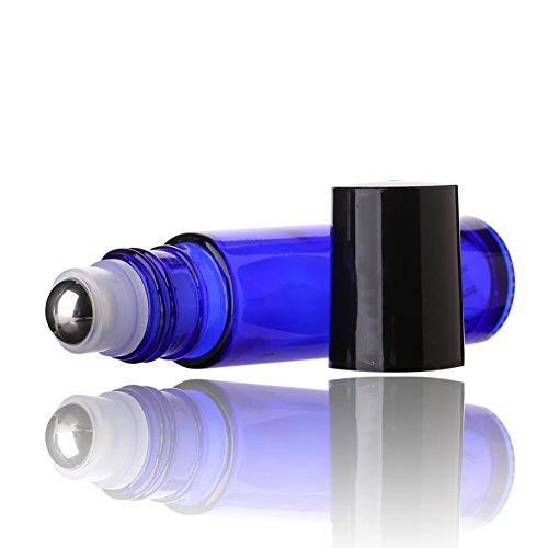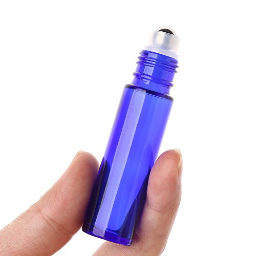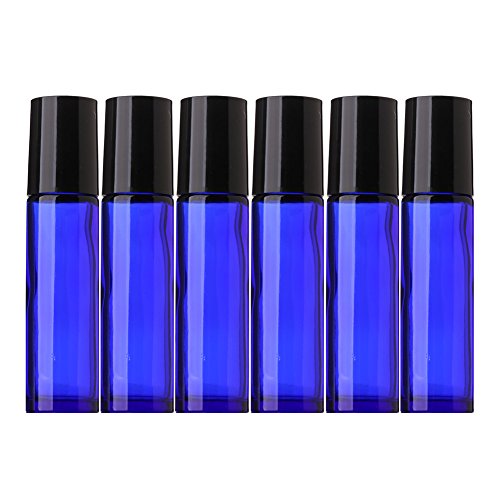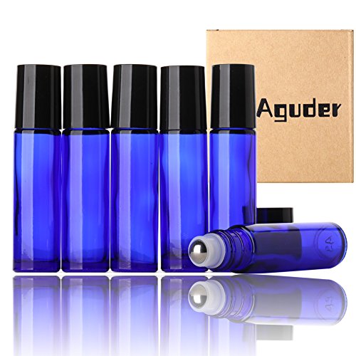 Aguder 10 ml Roll on Bottles with Stainless Steel Roller Balls, 6 Pack, Cobalt Blue