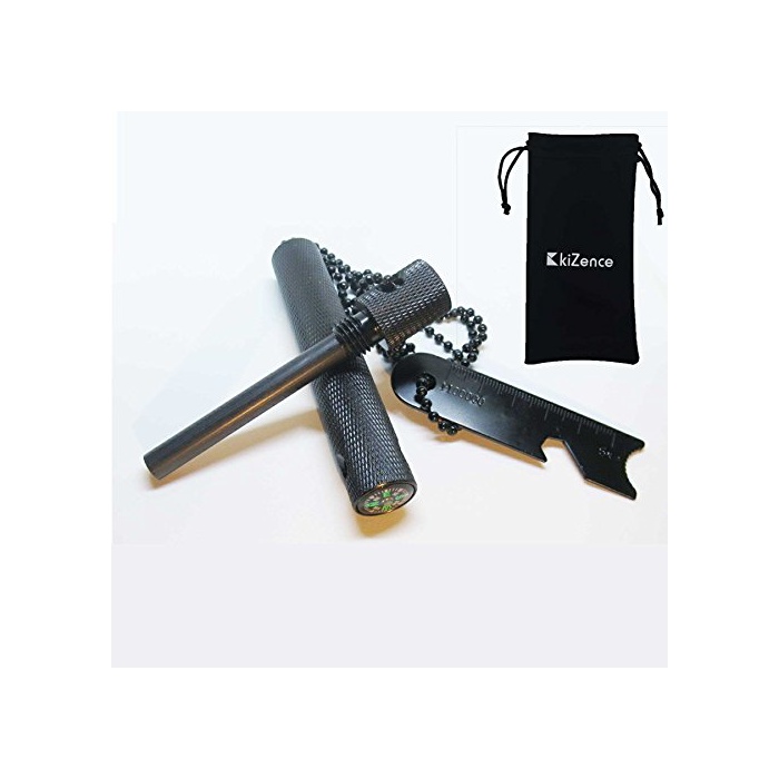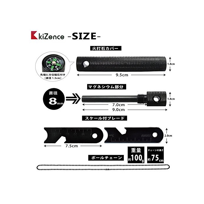 Kizence 【kizence】파이어 스타터 화타석소형 부싯돌 알루미늄 마그네슘 봉일본어 설명서부 블랙 kizence전용 수납 대부