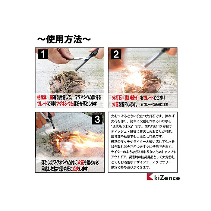 원본상품명: 【kizence】ファイヤ?スタ?タ? 火打石 小型 火打ち石 アルミ マグネシウム 棒 日本語?明書付 ブラック kizence?用?納袋付