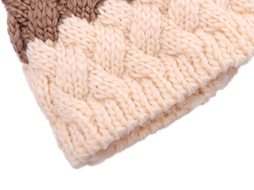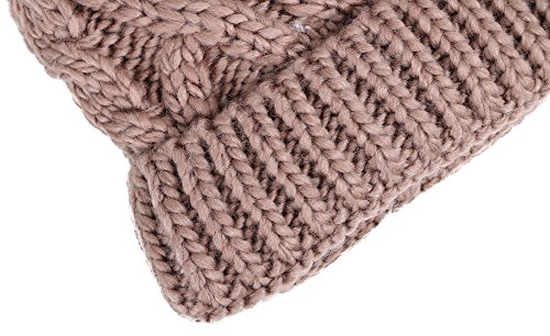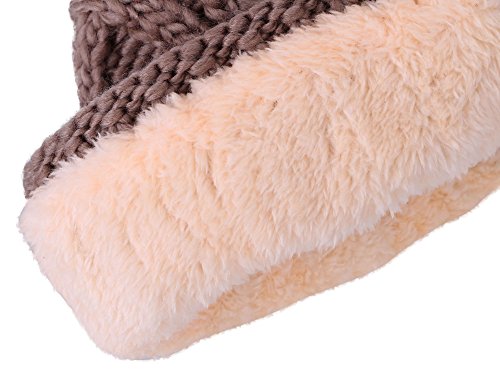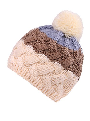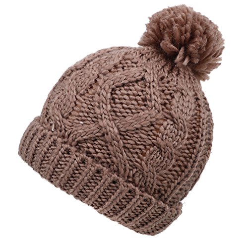 Arctic Paw Kids Beanie Chunky Knit Beanie with Yarn Pompom, Khaki with Fleece