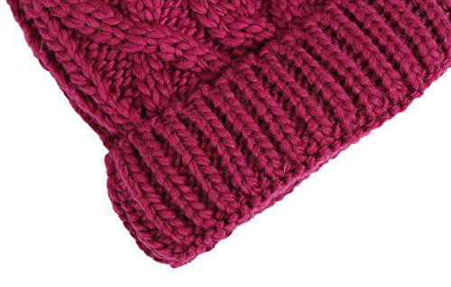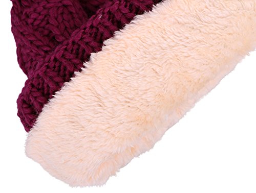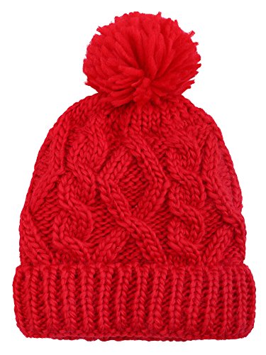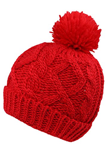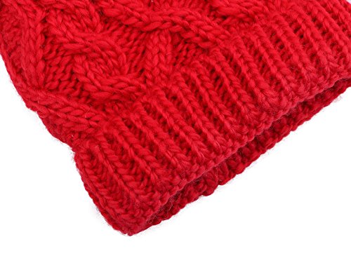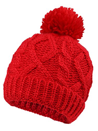 Arctic Paw Beanie Baby Chunky Knit Beanie with Yarn Pompom, Red with Fleece