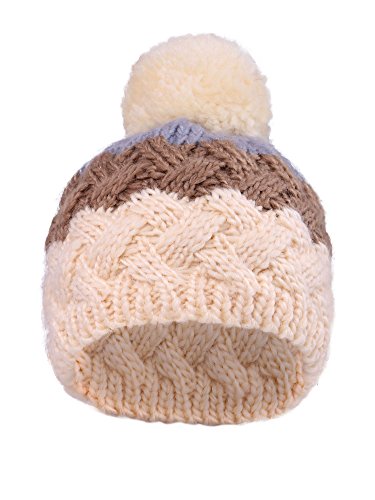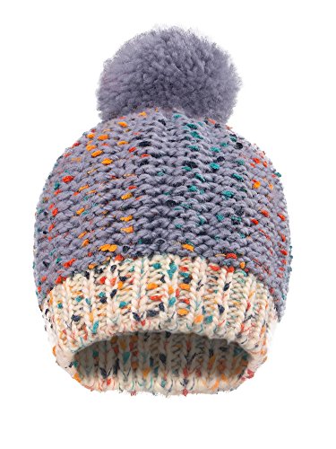 Arctic Paw Girls Chunky Knit Beanie with Yarn Pompom, Cream Speckled