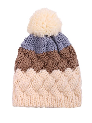 Yarn Pompom Chunky Knit Beanie Yarn Pompom By Arctic Paw, Cream/Khaki/Grey