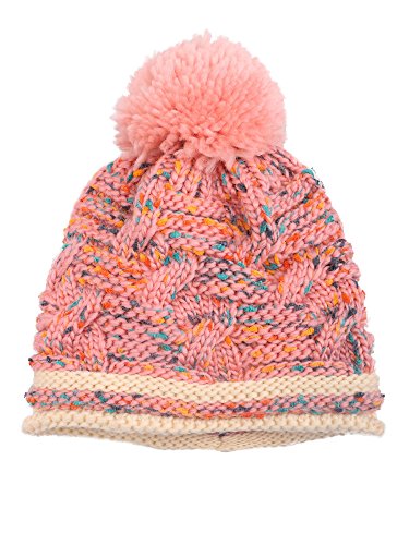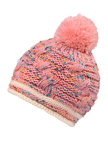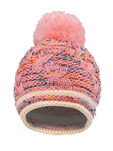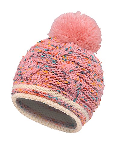 Arctic Paw Girls Chunky Knit Beanie with Yarn Pompom, Pink Speckled