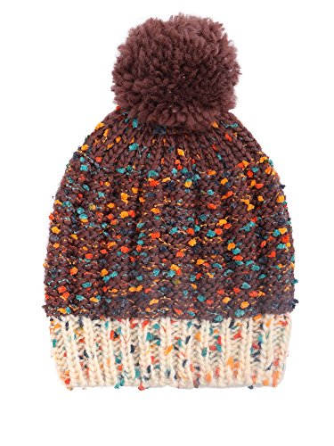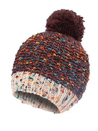 Arctic Paw Kids Chunky Knit Beanie with Yarn Pompom, Brown Speckled