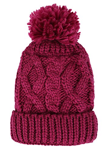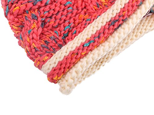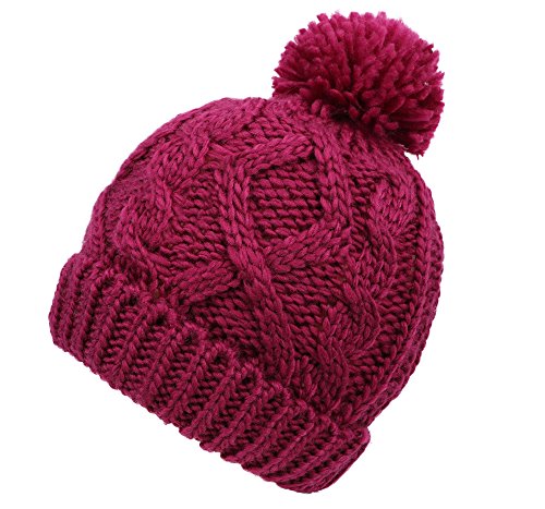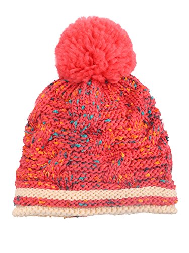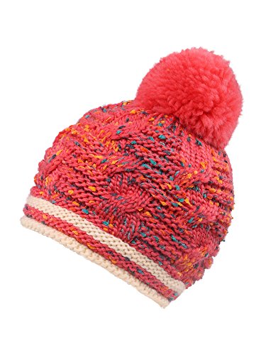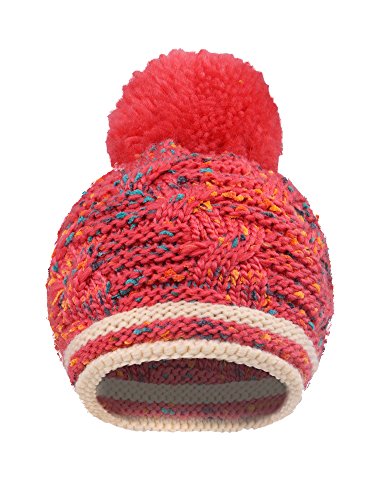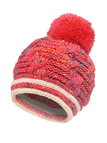 Arctic Paw Girls Chunky Knit Beanie with Yarn Pompom, Red Speckled