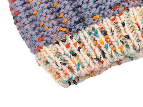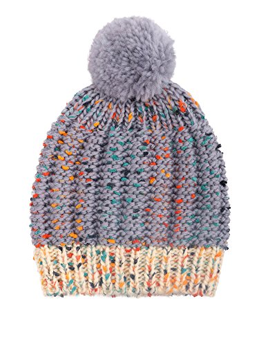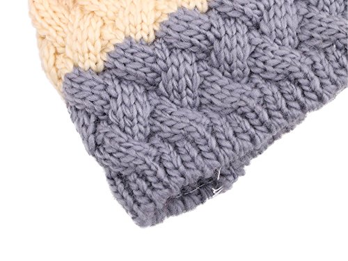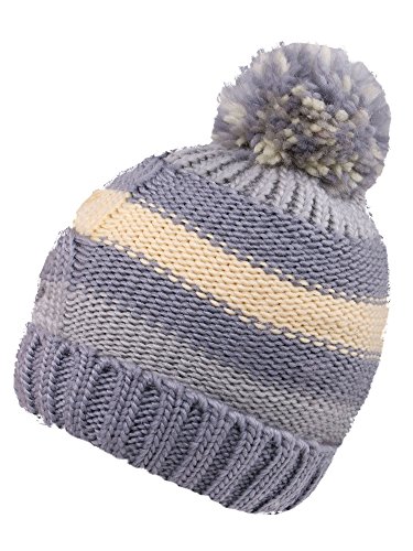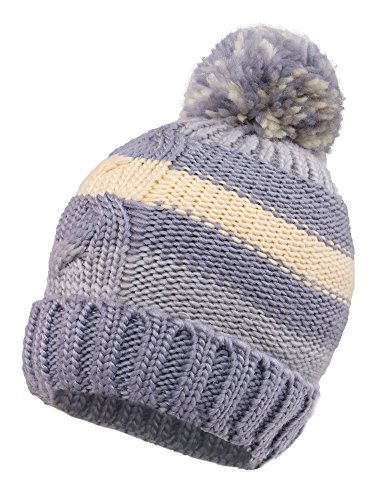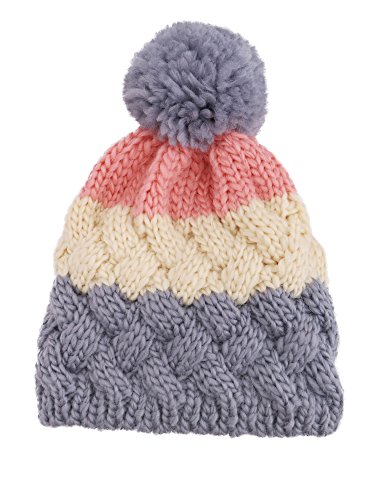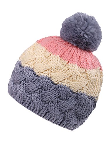 Arctic Paw Boys' Knit Beanie Chunky Knit Beanie with Yarn Pompom,Grey/Cream/Pink