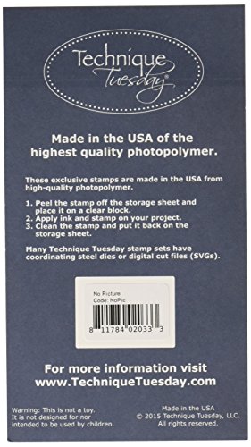 -. Binding : Misc. -. Brand : Technique Tuesday -. EAN : 0811784020333 -. Feature : Stamp bring a positive attitude to your paper crafts / Made of the highest quality photopolymer / This package contains a set of nineteen clear stamps on one 6 x 4 inches backing sheet / Available in no picture design / Made in USA -. Label : Technique Tuesday -. Manufacturer : Technique Tuesday -. Model : NOPIC -. MPN : NOPIC -. NumberOfItems : 1 -. PackageQuantity : 1 -. PartNumber : NOPIC -. ProductGroup : Art and Craft Supply -. ProductTypeName : HOME -. Publisher : Technique Tuesday -. Studio : Technique Tuesday -. Title : Technique Tuesday NOPIC Clear Stamp, 4 by 6-Inch, No Picture -. UPC : 811784020333