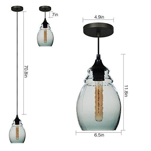 - Mini Pendant Dimensions: 6.5"*6.5"*11.8"glass shade, 70.8" adjustable hard wire cord/chain. Bulb NOT included. Easy-to-install.