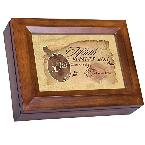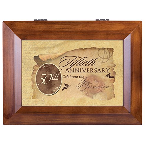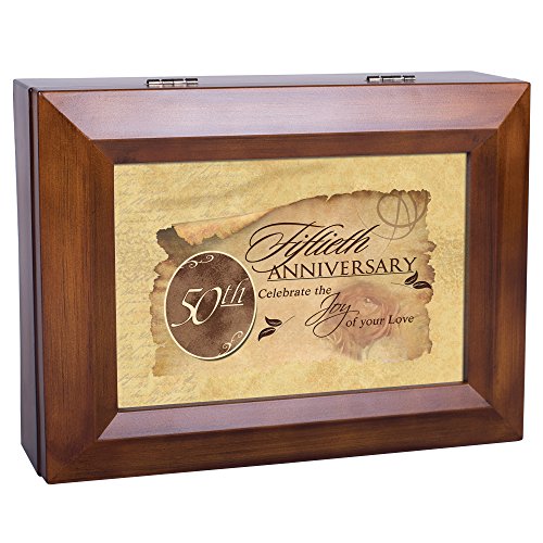 Fiftieth Anniversary Celebrate Joy Love Woodgrain Digital Keepsake Music Box Plays My Wish