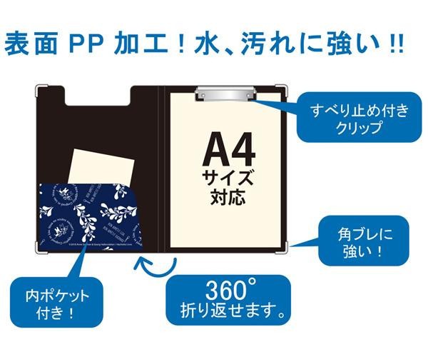 A4サイズ対応、360度折り返せて書きやすい!!表面にPP加工を施し、水・汚れに強くしております。クリップには滑り布止め、角潰れ防止にスチールガードを取り付けています。内側ポケット付き♪ |
