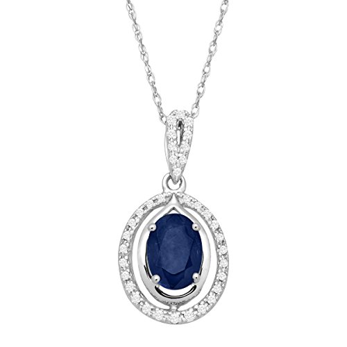 Timeless beauty takes shape in this simple pendant! A 1 ct oval-cut natural Kanchanaburi sapphire is haloed by round-cut diamonds, totaling 1/10 ct, all set in 10K white gold. Piece measures 13/16 by 3/8 inches. Comes with a 10K white gold 18-inch rope chain with a spring ring clasp.Feature
