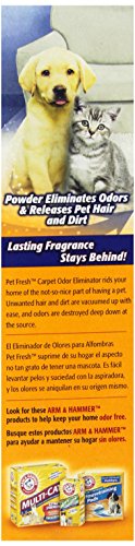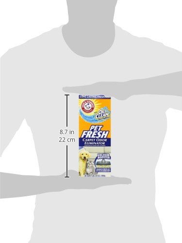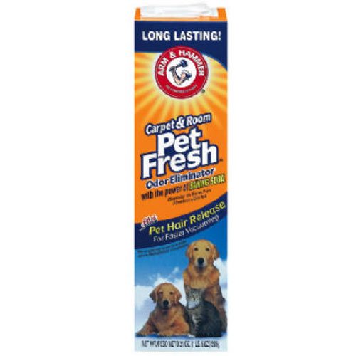 -. Binding : Health and Beauty -. Brand : Arm & Hammer -. EAN : 0033200114482 -. Feature : Loosens and help your vacuum lift up to 25% more dirt than vacuuming alone / Plus the power of oxi clean dirt fighters / Unwanted hair and dirt are vacuumed up with ease, and odors are destroyed deep down at the source / Safe to use around pets / Lasting fragrance stays behind -. Label : AmazonUs/CHUW7 -. Manufacturer : AmazonUs/CHUW7 -. NumberOfItems : 1 -. PackageQuantity : 1 -. ProductGroup : Pantry -. ProductTypeName : HEALTH_PERSONAL_CARE -. Publisher : AmazonUs/CHUW7 -. ReleaseDate : 2015-01-20 -. Studio : AmazonUs/CHUW7 -. Title : Arm & Hammer Pet Fresh Carpet Odor Eliminator, 30 Oz -. UPC : 033200114482