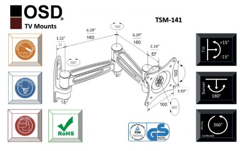 -. Title : OSD Audio TSM-143 Tilt, Swivel and Portrait to Landscape Mount for TV