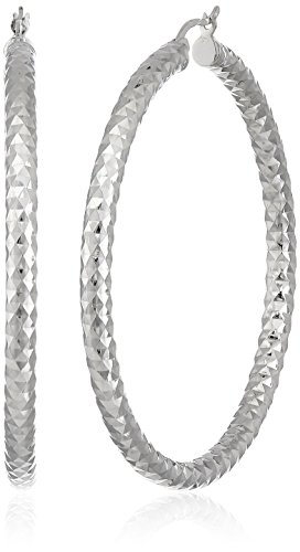 Step outside the fashion box with the unusual Sterling Silver Double Diamond-Cut Hoop Earrings. Each 925 sterling silver hoop earring is fashioned into a traditional circular shape with a diamond-cut pattern along the outside edge, melding retro style with sleek modernism. A click-top fastener ensures these earrings won't get lost. These thick, faceted silver hoops would look great paired with a chic jumpsuit and flashy high heels.Feature