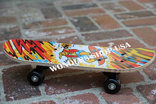 -. Brand : Skateboard -. Color : Skate -. EAN : 6958090460089 -. Feature : Simple design, very beautiful appearance / Deck is strong and durable , can withstand a great weight / Street Series center-set wheels are ideal for all-around long board skating / The concave, tapered shape and rounded kick tail and nose provide versatile performance around town / Suitable for usual practice and general game. Deck Measures 16.93 x 5.51" -. Label : Kid Skate -. Manufacturer : Kid Skate -. MPN : Wonder Skate -. NumberOfItems : 1 -. PackageQuantity : 1 -. PartNumber : Wonder Skate -. ProductGroup : Sports -. ProductTypeName : OUTDOOR_RECREATION_PRODUCT -. Publisher : Kid Skate -. Studio : Kid Skate -. Title : New 17-inch Complete Deck Durable Mini Skateboard Bearings Wheels Skate