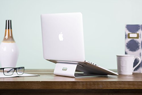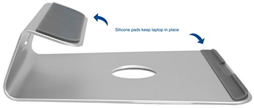 PREMIUM ALUMINUM universal desktop stand for 11" to 15" laptops, notebooks, chromebooks, Macbooks and more. Single-piece light weight design comes with a silver anodized finish that matches most frames