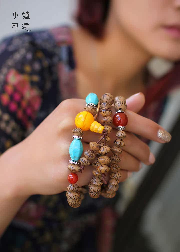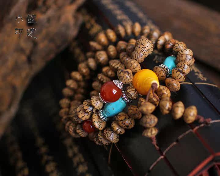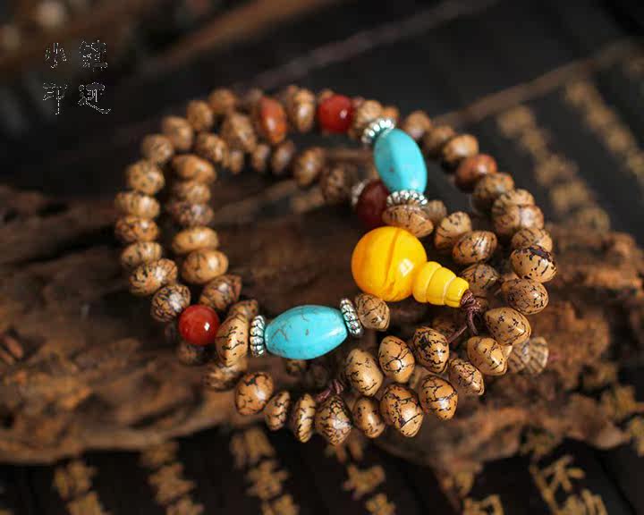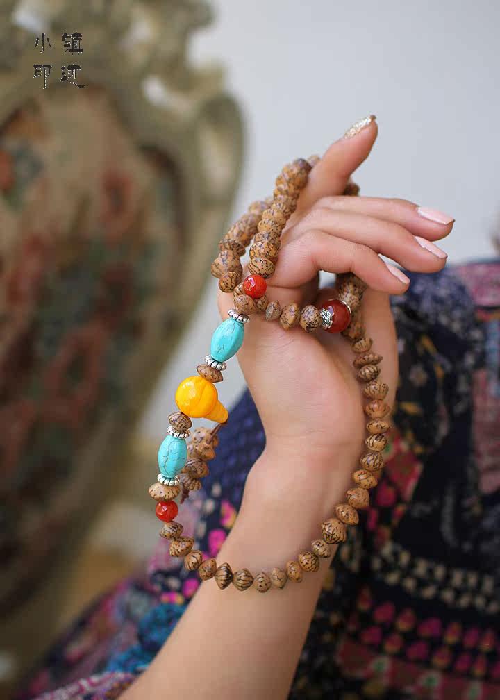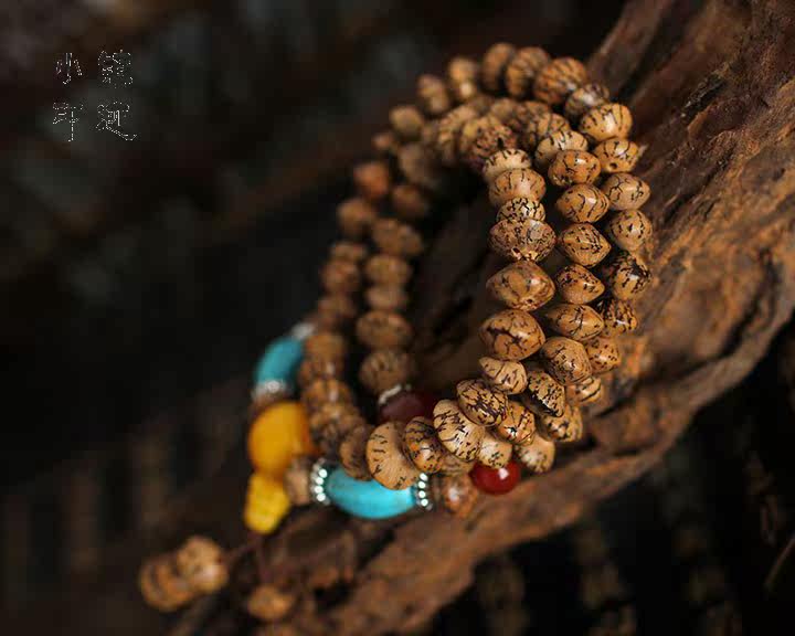 Note Reference: Xingyue Bodhi seeds of plants, called strong Buddhist child, the original grain white, irregular shape, like a small ingot; round flat market, and is the product after processing, so there were, but wearing a different length of time, the color and smoothness will be differences; another useful high degree of simulation of plastic products, in fact, little color and smoothness of the problem, often wear more and more beautiful, as can this mantra or Buddha, the better.